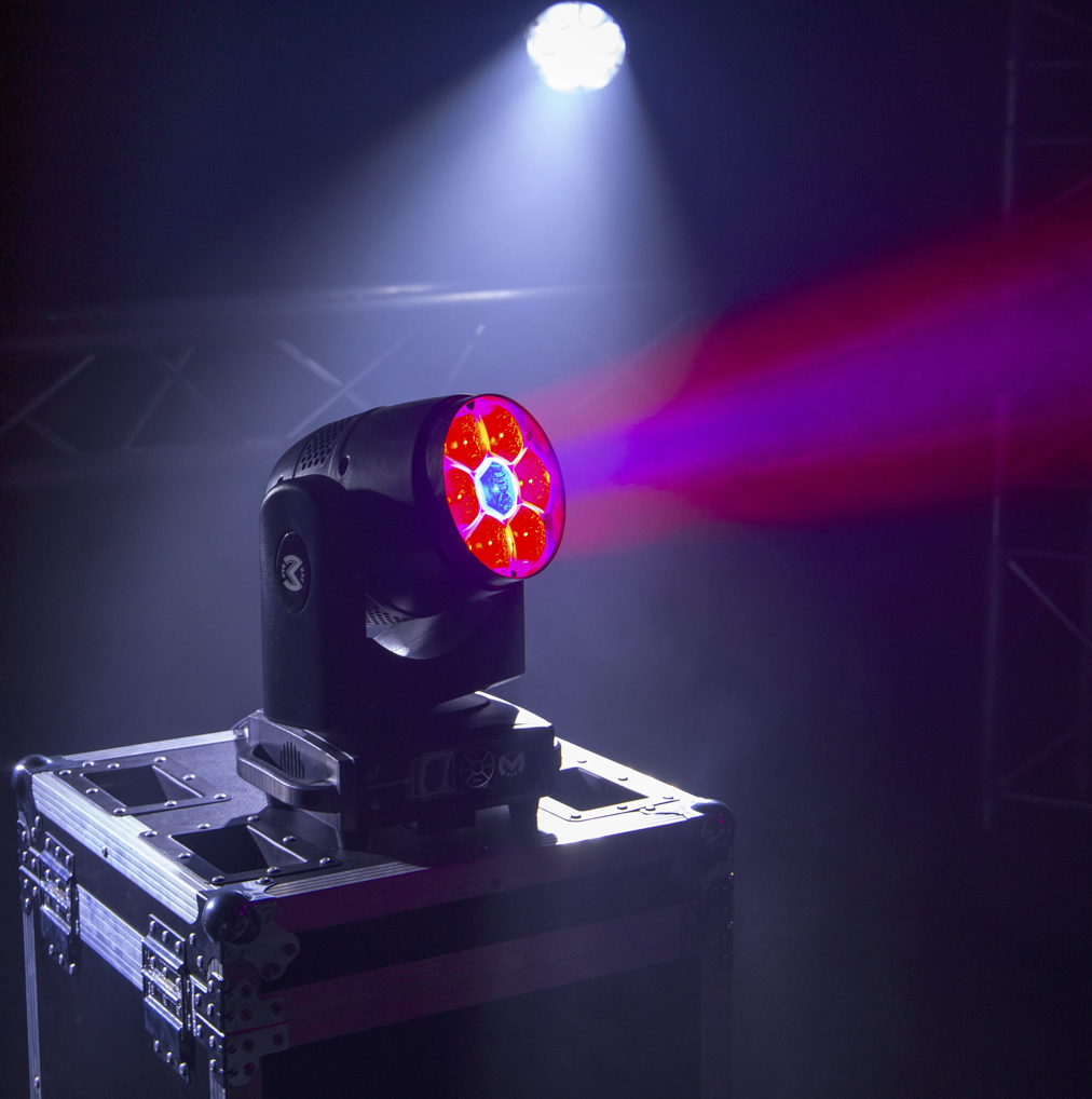 - Type lyre LED mobile Wash avec zoom motorisé