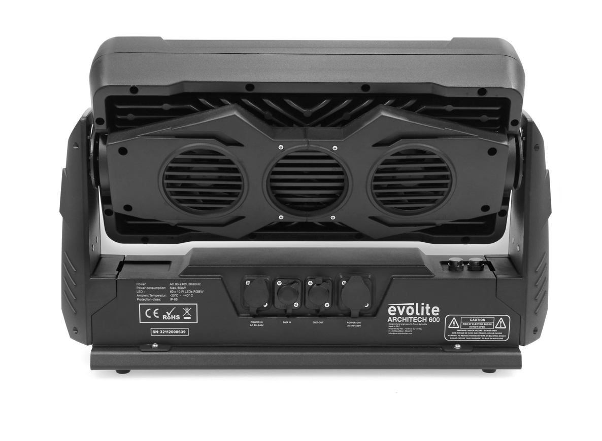 - Connectiques Powercon IN / OUT DMX 3 et 5 points