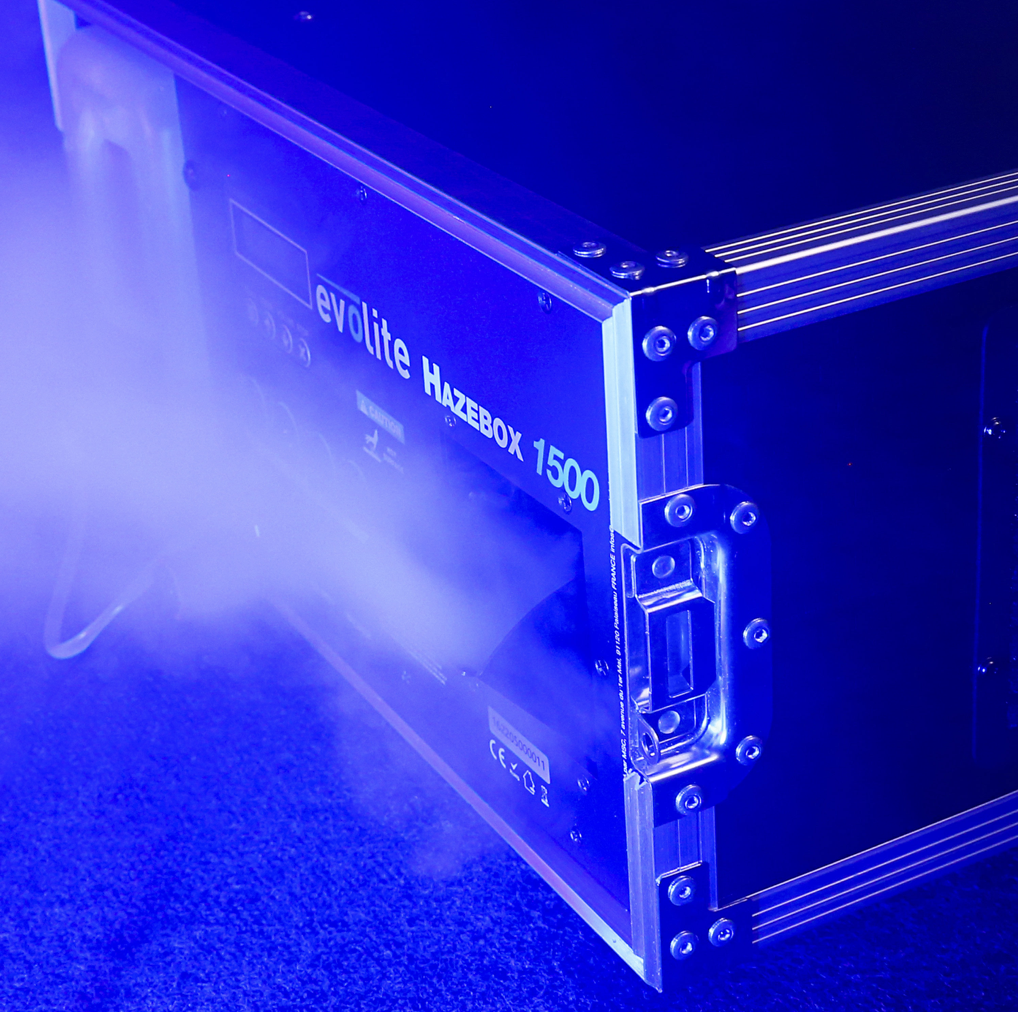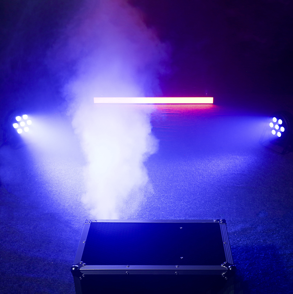 Sa production de brouillard fin permet d’intensifier la visibilité des faisceaux lumineux et d’ajouter de la profondeur aux ambiances sans saturer l’espace.