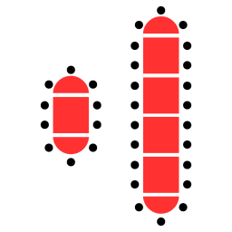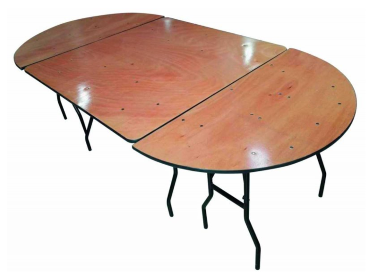 Table d’honneur composée de 2 tables demi-rondes 122 × 61 cm et d’une ou plusieurs tables carrées 122 × 122 cm.