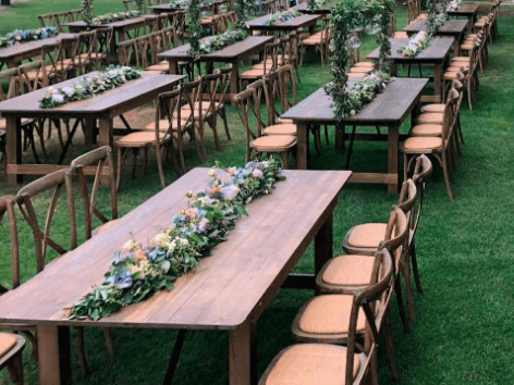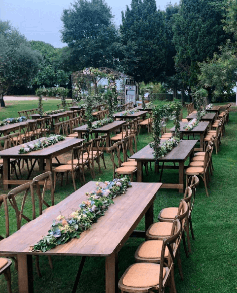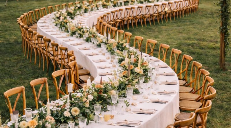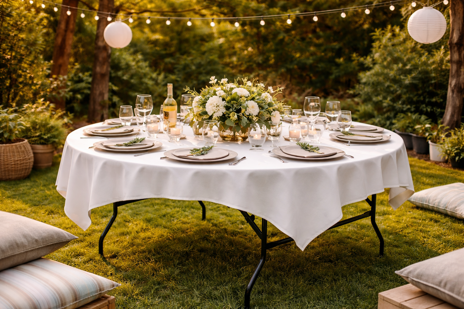 Convient aux repas, cérémonies et configurations temporaires en intérieur ou extérieur.