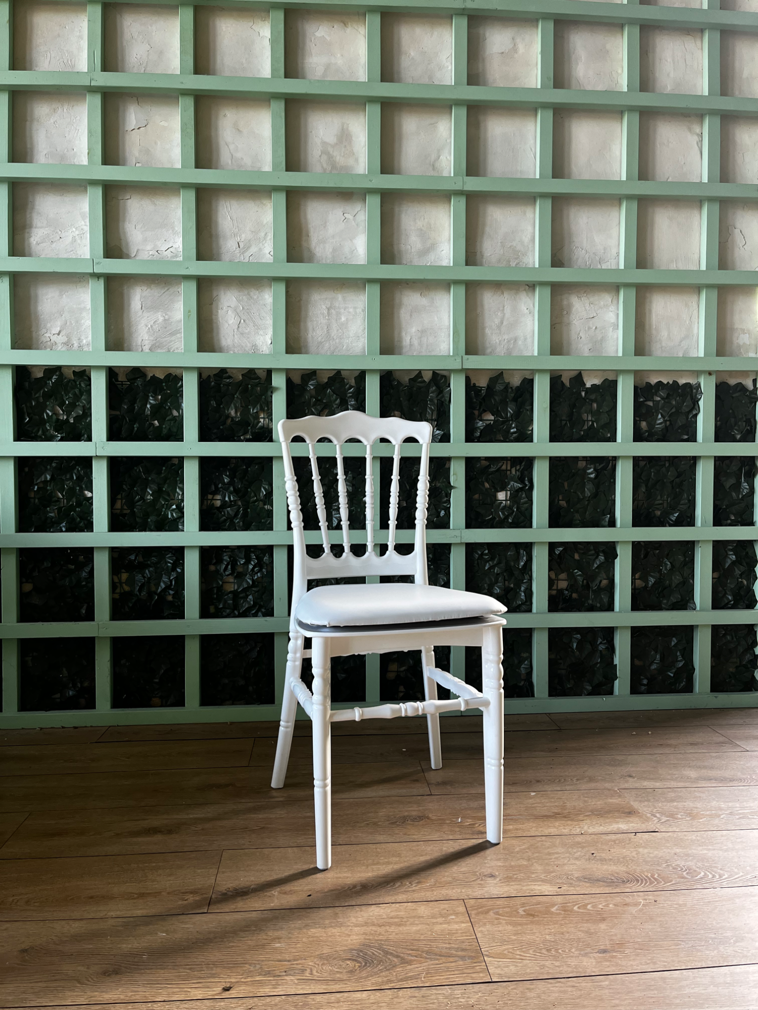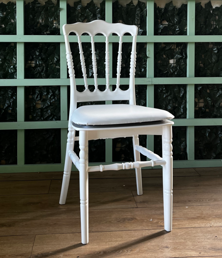 Chaise au design élégant type Napoléon, en polypropylène blanc.